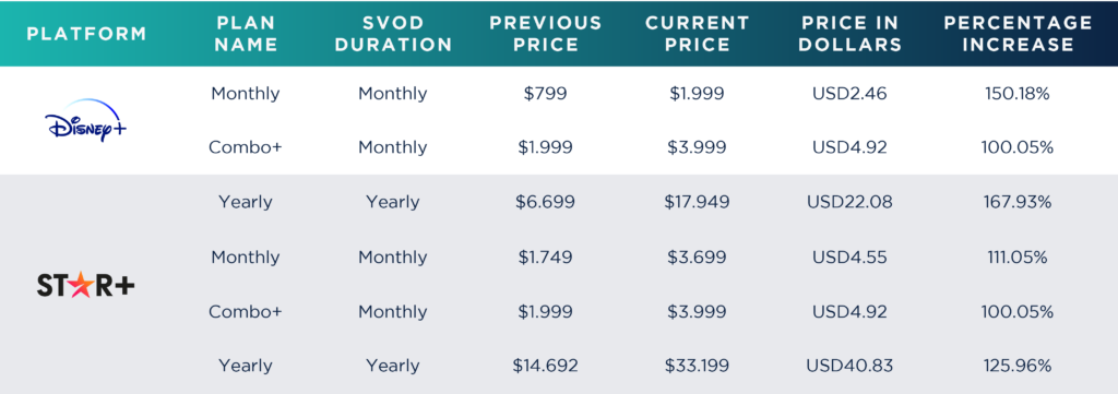 Es importante señalar que este podría ser el último aumento antes de la integración esperada en América Latina. A partir del segundo trimestre de 2024, todo el contenido de Star+ se fusionará con Disney+, con el propósito de brindar a los suscriptores de la región una experiencia de streaming completa en una sola aplicación. Esta unión representa un cambio significativo en la oferta de entretenimiento en América Latina y marca la conclusión de un ciclo de apenas 2 años y medio desde el lanzamiento de Star+ en América Latina en agosto de 2021.