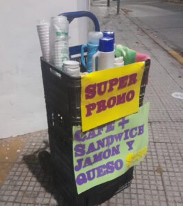 Con un precio de $1800 por un café y un sándwich, elaborados con pan casero por las propias emprendedoras, el carrito móvil se convierte en un rincón de sabores familiares y calidez en medio de la rutina diaria.
