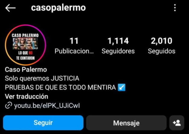 Esta cuenta de Instagram en cuestión, «Caso Palermo» y una web llamada www.casopalermo.com, apuntan a que los jóvenes que se encuentran presos, fueron encerrados y son inocentes, además afirma que la joven que sufrió el ataque es culpable que los chicos estén encerrados.