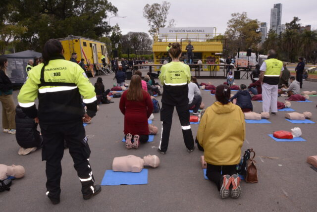 Desde el gobierno porteño, realizaron hoy sábado una Jornada Masiva de Reanimación Cardiopulmonar (RCP), la misma destinada a brindar información, herramientas y técnicas de primeros auxilios a vecinos y vecinas, en el Parque Tres de Febrero, del barrio de Palermo.