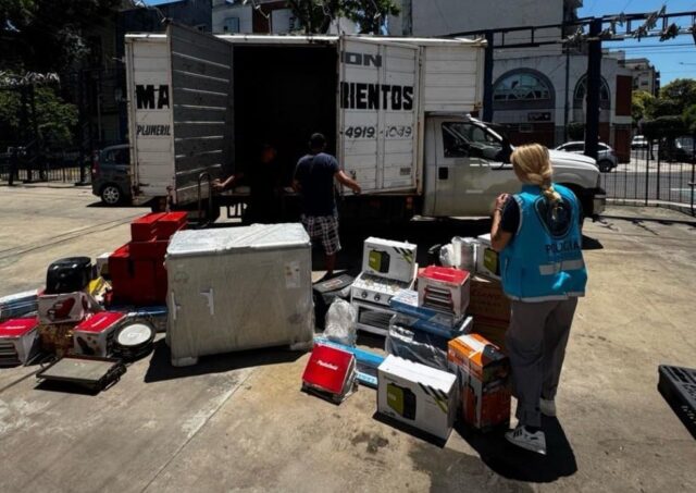 El listado continuó con soportes para televisores de distintos tamaños y modelos, dos purificadores de agua, quince parlantes, una cocina de tres hornallas, nueve soldadoras eléctricas y cinco pares de borceguíes.