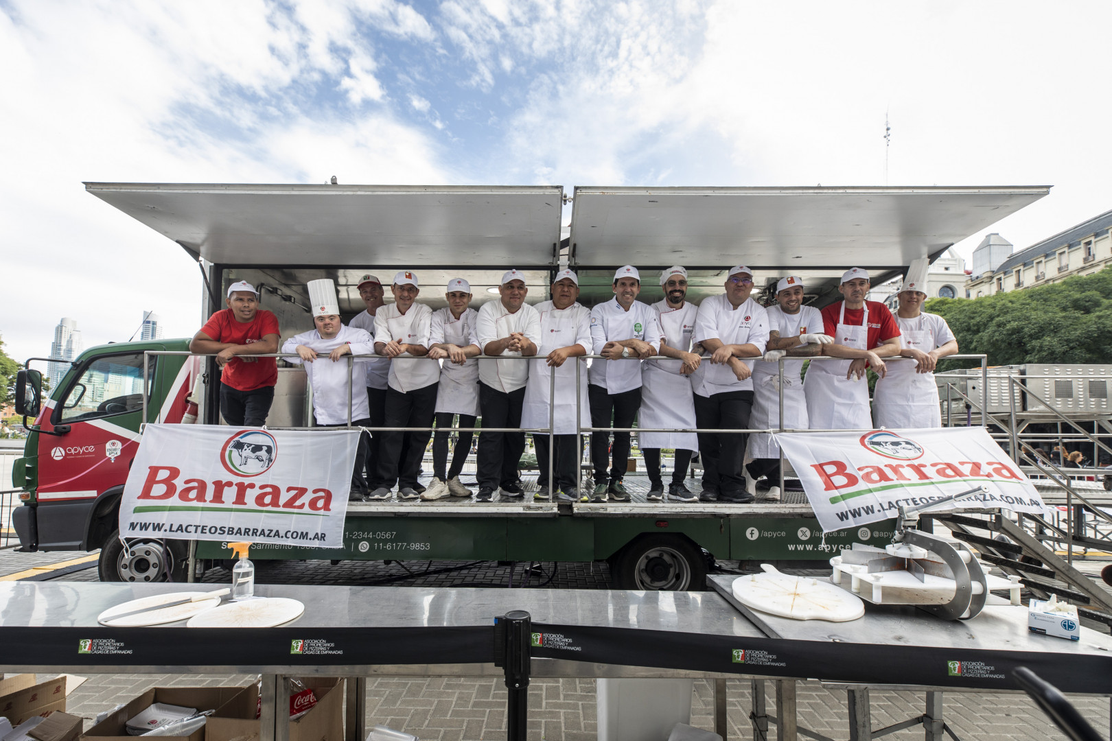 Mientras bajaba el sol, más y más pizzas se vendían en el puesto de la Asociación de Pizzerías y Casas de Empanadas (APyCE), donde además varios maestros pizzeros amasaban en vivo. El público pudo disfrutar de pizza de calidad al mismo tiempo que, por iniciativa de APyCE, colaboraba con la Fundación Natalí Flexer.