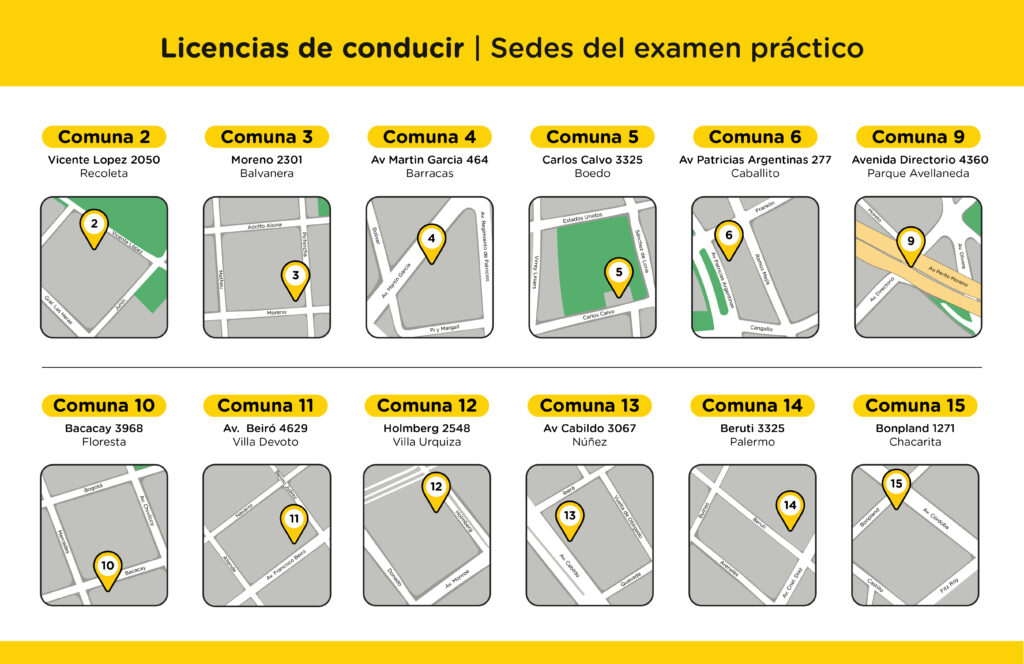 Actualmente, con el nuevo protocolo del examen en calle, los puntos de atención donde se puede rendir el examen teórico práctico y obtener la licencia en el día pasaron de dos a 12 en un año, y están distribuidos en distintos barrios de la ciudad, -el trámite de otorgamiento solo podía realizarse hasta entonces en la pista de Roca y en la sede del Automóvil Club Argentino