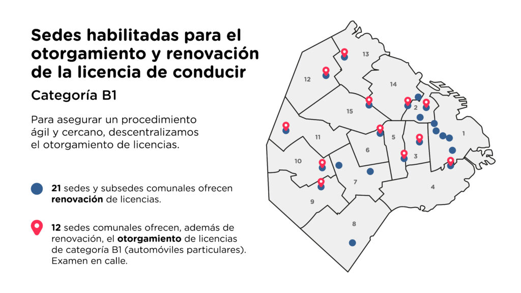 La Ciudad de Buenos Aires, ya dispone de 12 sedes habilitadas para sacar su licencia de conducir clase B1 y entre otras 21 para renovarla, los puntos de atención se duplicaron en el último año y a día de hoy alcanzan a todas las comunas de la Ciudad tras la apertura este martes de una nueva sede en Villa Devoto, -ubicada en un espacio refaccionado íntegramente, que en el último tiempo había sido utilizado como centro de vacunación.
